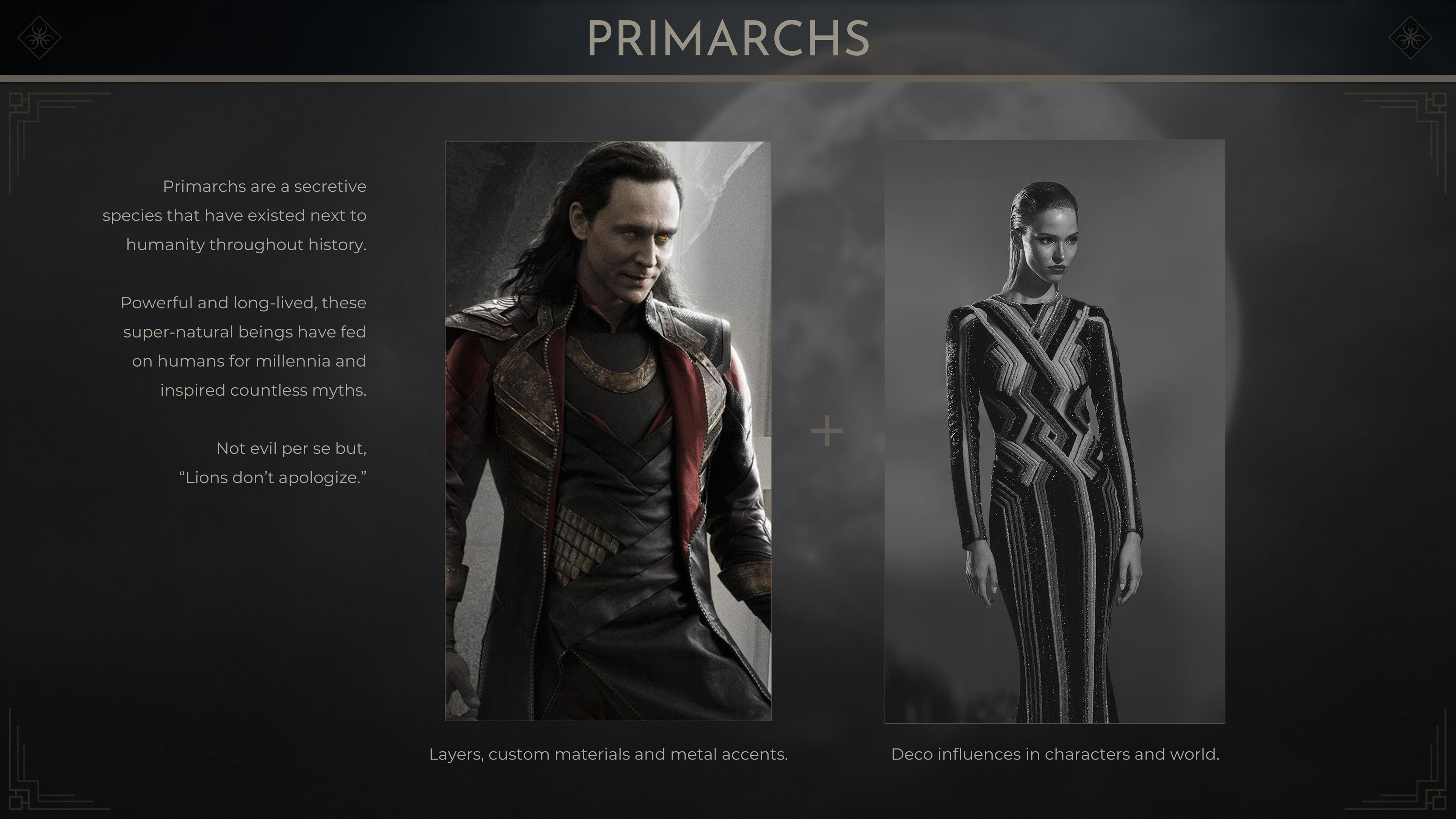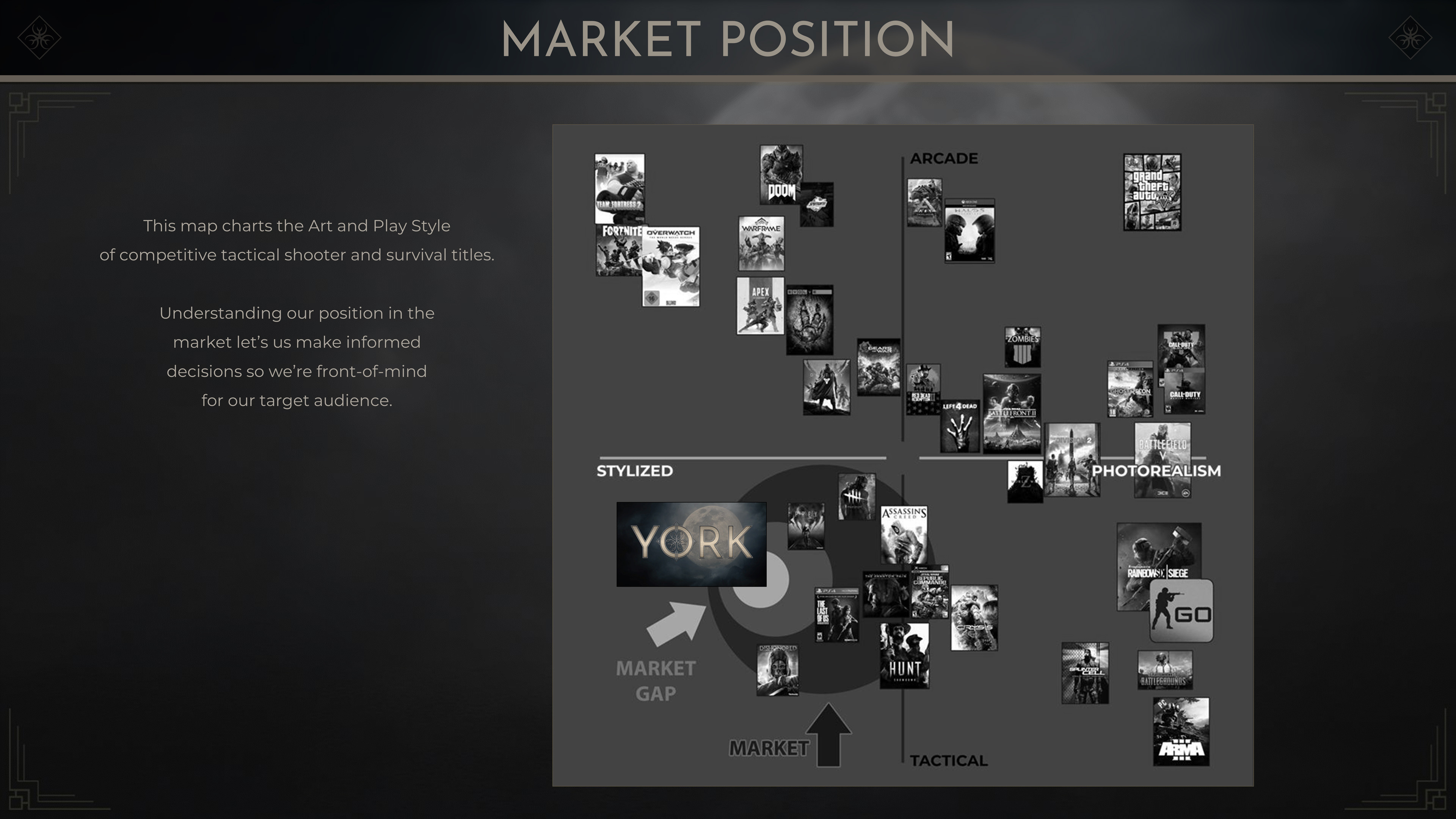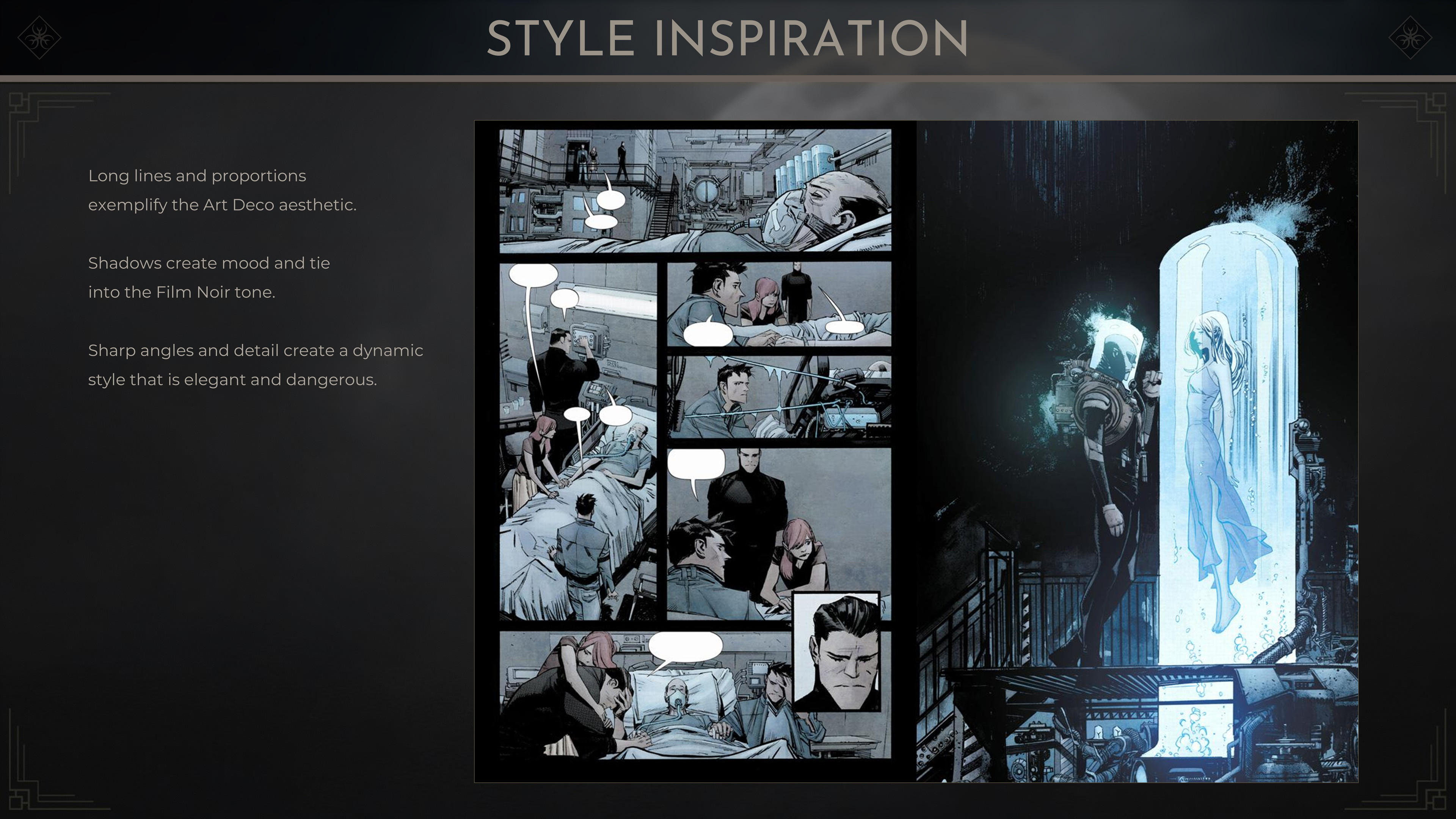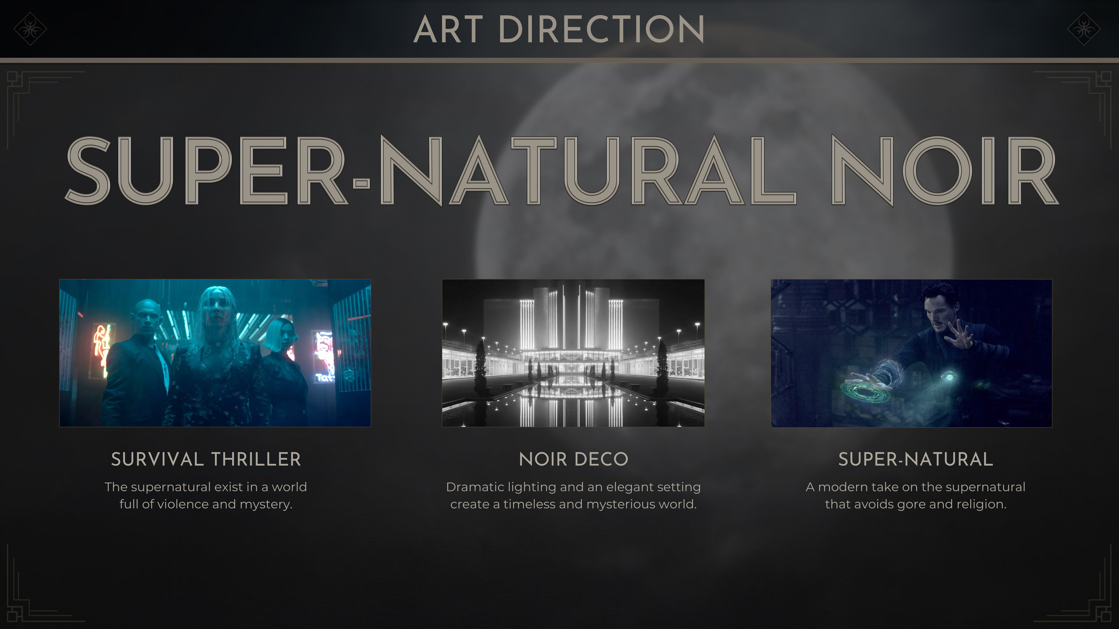 Example slides from an unreleased project, highlighting my approach to developing an ownable art style within a specific genre/market niche.